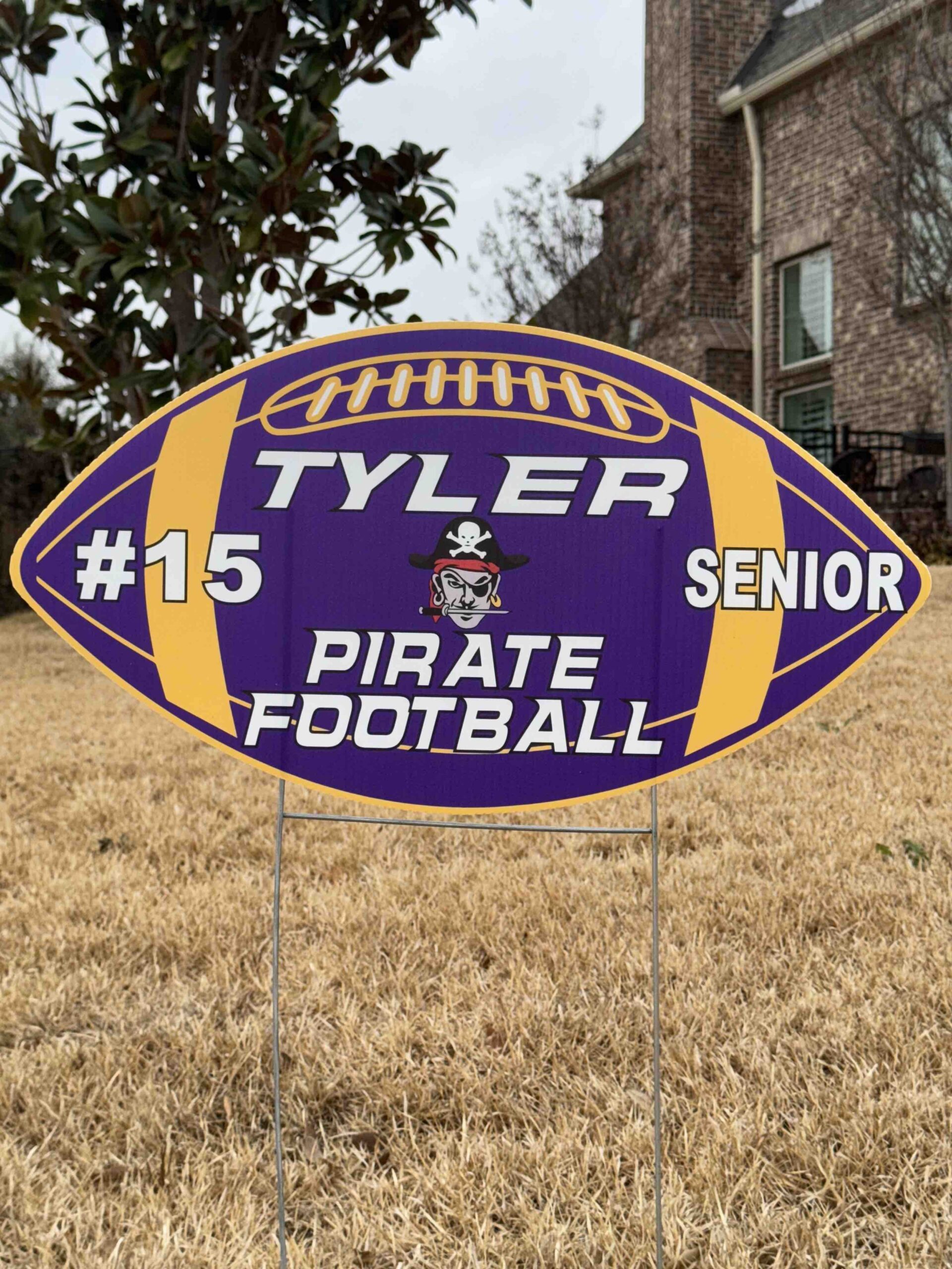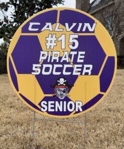 Our Custom Die Cut Yard Sign is a must for each player to show they are part of the team. Made of weatherproof polycarbonate corrugated plastic covered in vibrantly printed vinyl. These 18″x24″ Yard Signs are available in single-side or two-side print.